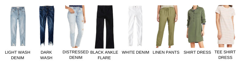 Light Wash Denim // Dark Wash Denim // Distressed Denim // Black Ankle Flare Denim // White Denim // Linen Pants // Shirt Dress // Cotton T shirt Dress